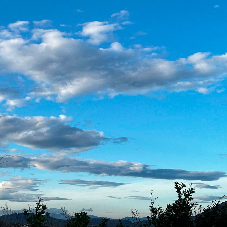 Dejo que el viento sur me acaricie el alma y me lleve volando entre sus hilos lejos, hacia atrás, sobre la distancia de un Tiempo pasado, feliz, entre estas nubes desgajadas.