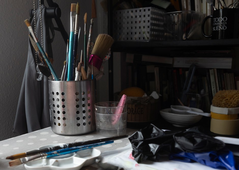 Abro los ojos en la ducha a ver si consigo que entre la cordura por alguna grieta de mis sueños hasta el cerebro. El papel blanco me espera con sus mejores galas: la pureza que sugiere el color blanco. Medito unos momentos, respiro despacio, pienso en no pensar. Siento el vacío y el poder en mi interior discutiendo, mientras unas gotas de negro caen al vacío debido a la turbulencia de mis gestos ¡cielos! la resistencia del «ego». Quiero interpretarlo como un error (no como un fastidio) que, sin duda, según me lo han explicado cientos de veces, puede utilizarse para dar origen a mi obra abstracta de hoy. La paletina me mira con ojos de desconsuelo. Le recuerdo que su participación es básica y fundamental, que es mi herramienta preferida hoy, que la aceptación es un poder divino para llegar a alcanzar el Flow.