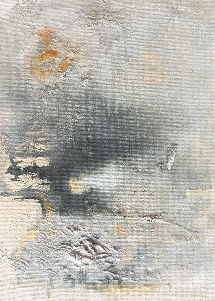 Idear nuevos trazos, capas, sedimentos de pinturas frescas. Hay una energía en el movimiento. A veces en calma, a veces en contra, o enredada como nudos, o arrastrada. Los colores conviven entre juegos de luz y sombras, erosión, rasgaduras del pigmento, corrosión, fluyendo en el lenguaje del agua. Mundos que afloran a través del pincel con trazos de líneas suaves o fuertes que surgen y se van cruzando, generando texturas angulosas o difusas, más allá del entendimiento visual. Destrucción y construcción configurando volúmenes, profundidad y trama, creando y recreando mundos fantásticos donde no existieron antes. Vibraciones del agua, de lo emocional. Lo definido y lo indefinido. Intuición.
